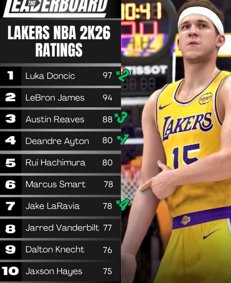 2025-11-07 16:15:35湖人四人2k能力值上涨:东契奇+2里夫斯+3 艾顿+1拉拉维亚+4