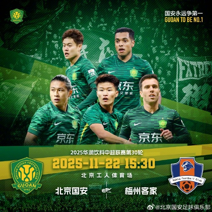 赛事预告|中超联赛第三十轮,北京国安vs梅州客家