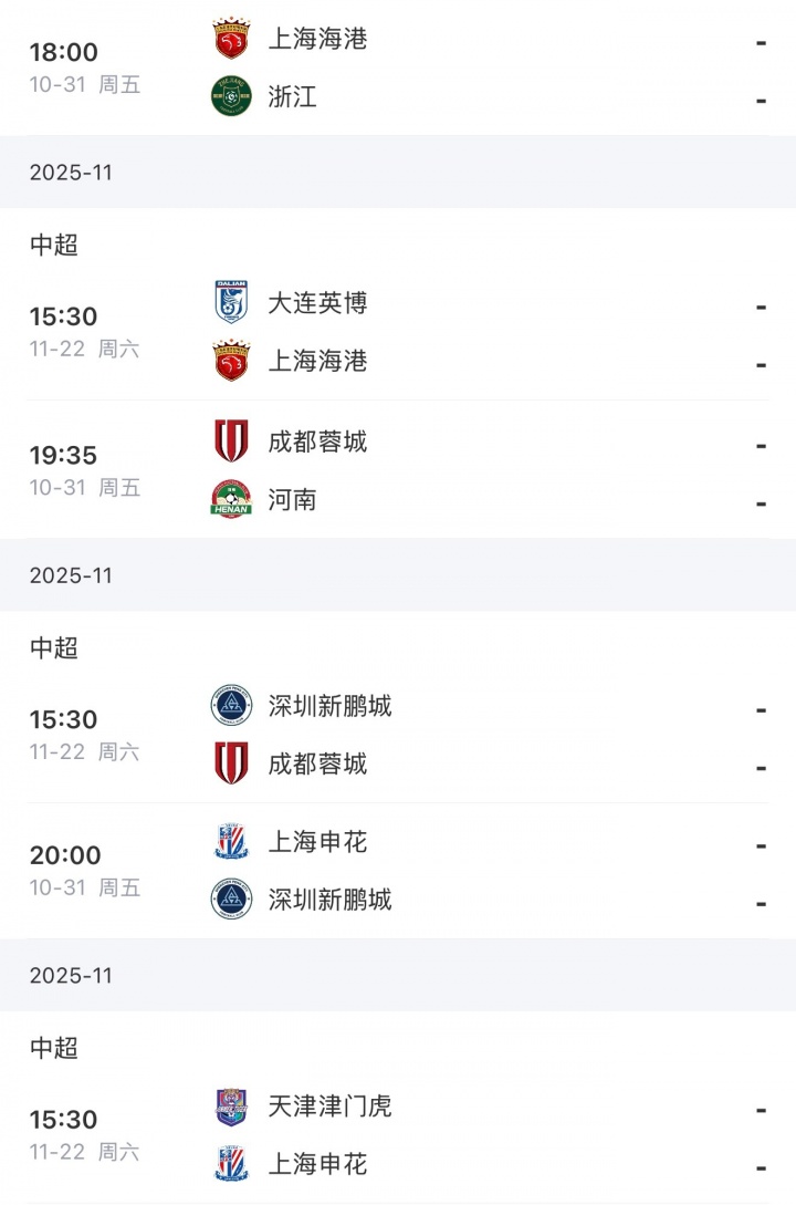 2025-10-27 00:38:47最后2轮!海港vs浙江英博,蓉城vs河南深圳,申花vs深圳津门虎!