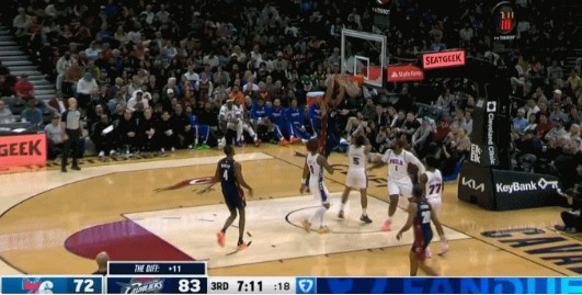 问题不大!米切尔速推反击突破喂饼阿伦暴扣!骑士轰出13-0!