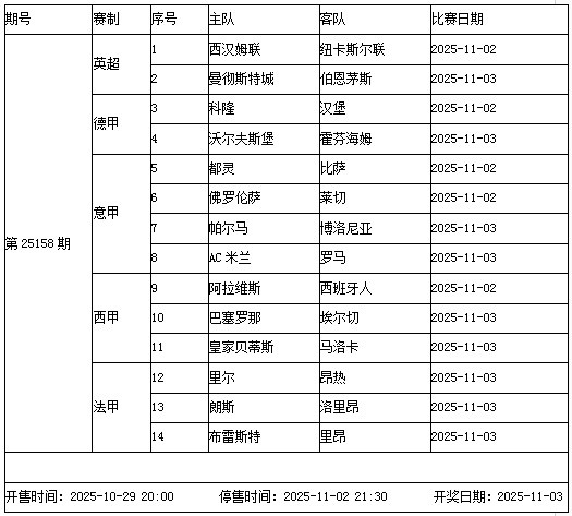 2025-10-31 16:03:34传足胜负彩第25158期看点:曼城对阵黑马 巴萨伤兵满营