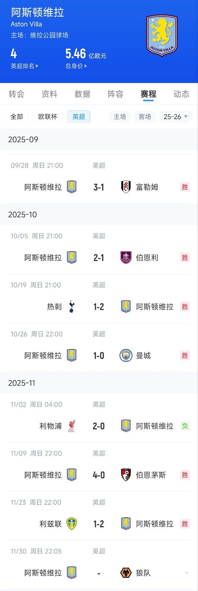2025-11-24 16:02:18一路向北!维拉7轮6胜狂砍18分从保级区冲到第4,仅输一场利物浦